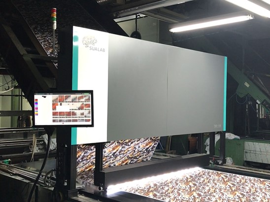인공지능 기반 스마트 팩토리 솔루 션 업체 ‘수아랩(SUALAB, 대표 송기영)이 섬유 인공지능 검사 솔루션인 ‘TAS(Textile A.I. Solution) 나염기’를선보였다.