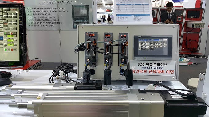 씨에스캠은 한국기계전에 참가해 스텝 서보 모터, 서보 드라이버, 서보 실린더, 비젼얼라인 장비, 나사 체결기 등을 소개했다.