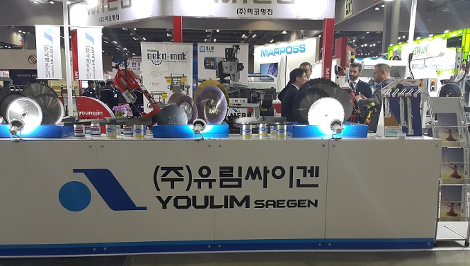 유림싸이겐은 한국기계전에 참가해 베카맥 톱기계, 멥 원형톱기계 등을 직접 전시하고 참관객들에게 소개했다.