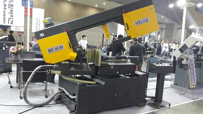 전시회에서 선보인 베카맥(BEKA-MAK) 톱기계 BMSY 440DGH 모델은 유압에 의한 톱날 텐션을 유지하며 인버터에 의한 톱날 선속도를 무단 조절할 수 있다. 이 톱기계는 자동이송 블레이드 가이드 암을 갖고 있다.