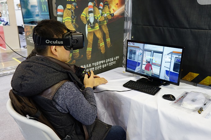 ▲ 메타포트의 VR 가상 훈련 시스템 '히어로스 온 파이어' 시연 모습