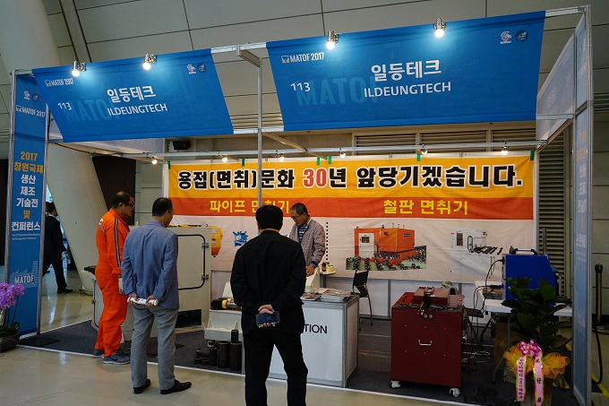 일등테크(ildeungtech)는 10월 31일부터 11월 3일까지 창원 국제 컨벤션센터에서 열리는 ‘창원국제생산제조기술전 및 컨퍼런스(이하 MATOF2017)’에 참가하여 플레이트 개선기 및 파이프관단 개선기를 선보였다.