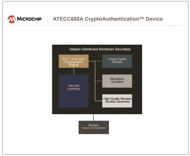 ATECC608A는 디바이스의 개인 키를 시스템에서 격리해 보안 영역 내에 별도 저장하고 첨단 암호화 기법을 적용함으로써 대부분의 디자인 타입에 활용 가능한 높은 수준의 보안을 제공한다.