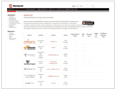 그 외에도 마이크로칩의 보안 디바이스 및 라이브러리 구현에 정통한 파트너 업체들의 기술 지원도 경험할 수 있다. IoT 애플리케이션 보안에서부터 카트리지나 액세서리 등 소모품에 대한 인증 기능 추가에 이르기까지 다양한 분야에서 보안 디자인 협력업체들의 전문성을 활용해 개발 비용과 출시 기간을 줄일 수 있을 것으로 보인다.