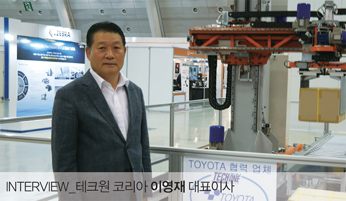 A. 테크원의 아이템은 여러 가지가 있다. 이번 전시회에 출품한 아이템은 패킹 관련 제품이다. 팔레트에 박스나 물건을 적재하는 이 기계는 국내에 잘 알려지지 않았지만, 외국에서는 많이 알려진 제품이다.