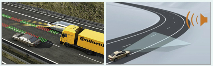 ▶차로이탈경고장치(LDWS: Lane Departure Warning System): 운전자가 졸음운전을 하거나 운전을 하다가 잠시 한눈을 판 사이에 차로를 이탈할 경우 카메라가 주행 차선을 인식하여, 운전자가 방향지시등을 켜지 않고 차선을 밟으면 경보음이 울려 사고를 예방하도록 보조하는 장치다.