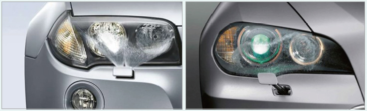 ▶ 전조등 닦이기(Headlamp washing system): 고광량 전조등의 경우 렌즈 표면의 먼지로 인한 대향차 운전자의 눈부심과 주행 운전자의 전방시계 확보를 위한 장치다.