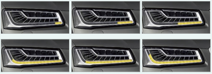 방향 전환시 순차적으로 점등되는 방향지시등이다.