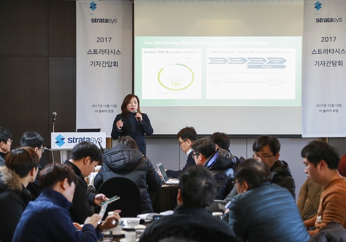 스트라타시스는 12월 13일 소공동 더플라자 호텔에서 ‘스트라타시스 코리아 2017 기자간담회’를 개최하고 스트라타시스의 최신 적층 제조 솔루션을 소개하는 한편 국내 시장 비즈니스 확장 전략에 대해 발표했다.
