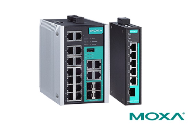 ▲Moxa의 새로운 EDS-518E 및 EDS-G205-1GTXSFP DIN-레일 스위치