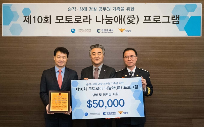 모토로라솔루션코리아가 순직 및 공상을 입은 경찰관과 소방관 가족에게 미화 총 7만 달러의 기금을 지원했다.