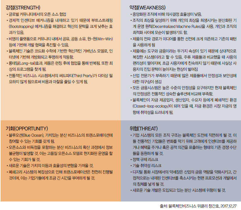 ▲ 블록체인 기반 분산비즈니스의 SWOT