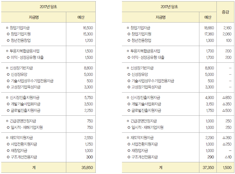 ▲ 표. 2018년도 중소기업 정책자금 현황