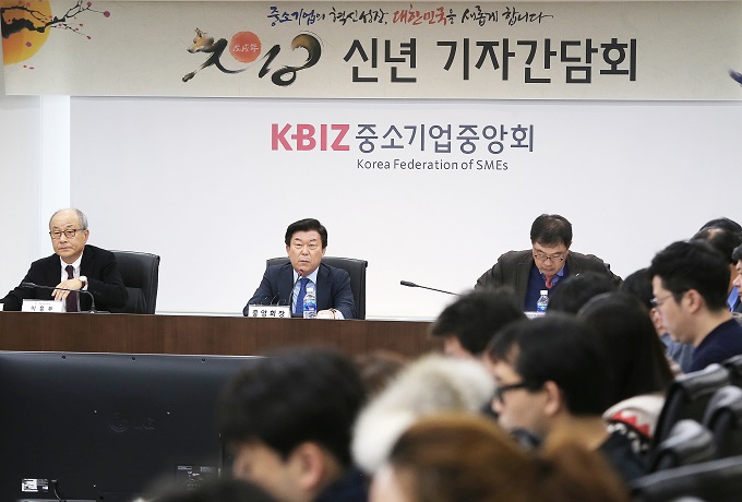 박성택 중소기업중앙회장은 1월 30일 중소기업중앙회에서 ‘2018년 신년 기자간담회’를 갖고, 중소기업 신성장 시대 기반 구축을 위해 ‘혁신성장 역량강화’, ‘中企 중심 경제구축’, ‘KBIZ 창의혁신’ 등 2018년 중기중앙회 운영방향 및 중점 추진과제를 발표했다.