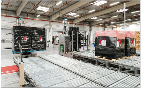 라인의 끝에서는 작업의 안전과 편의성을 향상시키기 위해 기계적으로 분리된 솔루션을 통해 4개의 팔레트를 동시에 픽업함으로써 효율적으로 적재할 수 있도록 한다.