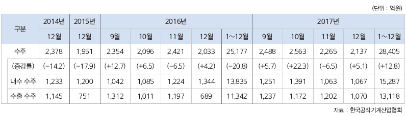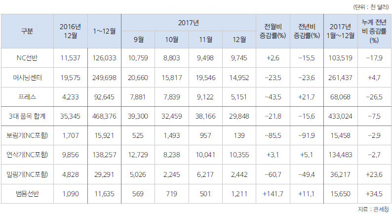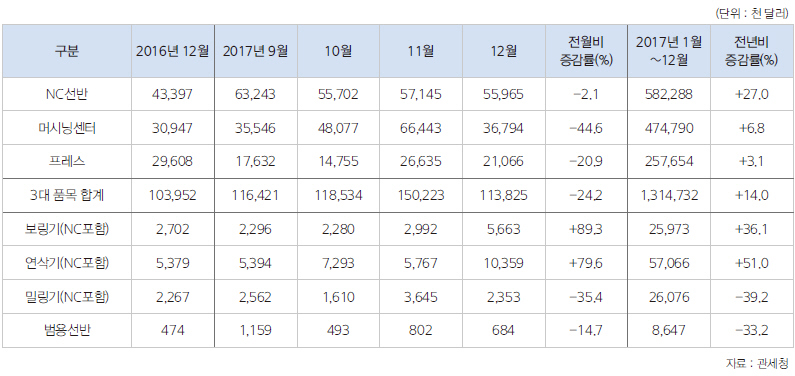 *본 리포트는 한국공작기계산업협회에서 발표한 ‘2017년 12월 공작기계 시장 동향’을 기반으로 작성되었다.
