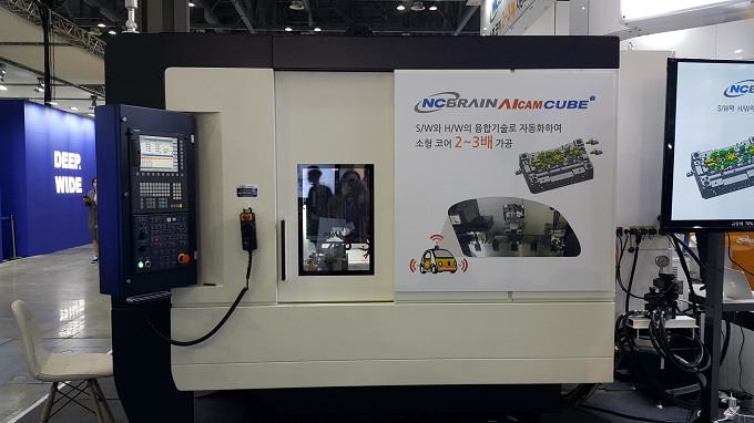 엔씨비는 SIMTOS에서 AICAM CUBE, AICAM 등을 선보이며 참관객들의 관심을 모았다. AICAM CUBE는 소프트웨어와 하드웨어 융합기술로 자동화함으로써 소형 코어 2∼3배 가공이 가능하다. 또한 3축에서 5축까지 JIG 자동화를 통해 작업 효율이 높다.