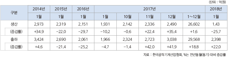 ▲ 2014년 ~ 2018년 1월 공작기계 수주