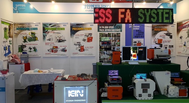 고속 프레스 주변기기 및 범용 프레스 자동화 장비인 캠피더, 그리프 피더, NC 피더, S-Loop 라인, 언코일러, 레벨러 등을 전문적으로 제조하는 경인엔지니어링은 SIMTOS 2018에 참가해 다양한 제품을 선보였다.