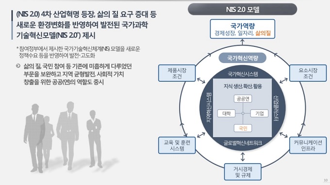 ‘국가R&D혁신방안’에서는 국가과학기술혁신체계(NIS) 관점에서 문재인 정부 5년 동안 추진할 R&D혁신의 큰 틀을 마련하고 국가R&D의 방향과 전략을 사람과 사회 중심으로 재정립하는데 중점을 두었다.