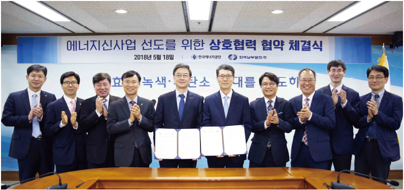 한국에너지공단은 지난 5월 18일, 한국남부발전과 ‘재생에너지·에너지 신사업 분야 산업 육성 및 보급 확대를 위한 업무협약’을 체결했다. 이번 업무체결에서 양 기관은 재생에너지 대규모 프로젝트 및 계획입지사업 추진, 에너지 신사업 개발, 4차 산업혁명 시대 에너지 융·복합 신기술 연구개발, 친환경 에너지 보급 및 산업육성 등을 위해 상호 협력할 것을 약속했다.