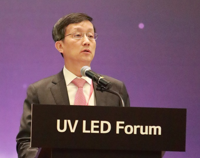 송준오 LG이노텍 LED사업부장은 제품 라인업과 개발 로드맵 등을 소개했다. 그는 “지난해 살균용 UV LED 광출력을 100mW까지 높인데 이어 올해는 150mW, 2019년에는 200mW까지 높여 나갈 계획”이라고 밝혔다.