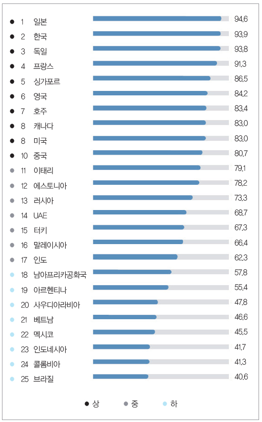▲ 혁신 환경 : 순위와 점수 (평균 69.9)