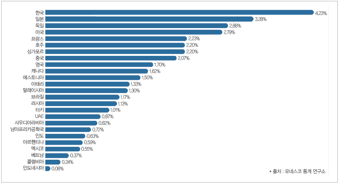 한국도 마찬가지인데 과학기술정보통신부에서는 2017년 약 1억 5천만 달러를 투자해 공공 및 민간 분야에서 수행하는 AI 관련 R&D에 투자했다. 독일 연방정부는 투자 및 산업 4.0 이니셔티브를 직접 지원하는 형태로 첨단 기술과 로보틱스 혁신에 집중하고 있다.