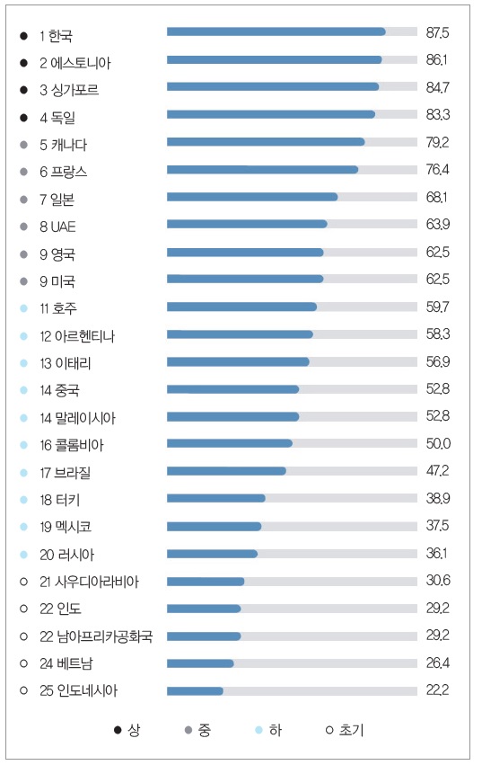 해당 부문에서 한국은 1위를 차지했는데 부분적으로는 교사 교육 및 평가 개혁을 위한 각고의 노력, 그리고 교육과정 개정 등과 소프트웨어 기술을 교실에 접목시키는데 특히 강조했기 때문이었다.