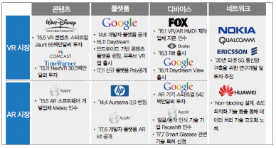 ▲ 그림 8. VR/AR 생태계 및 주요 참여기업들