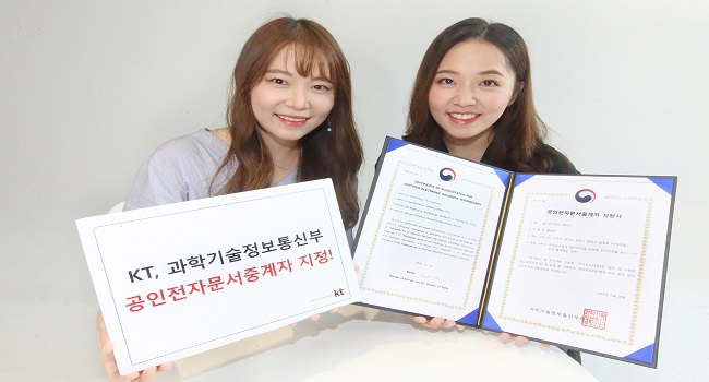 KT가 지난달 28일 과학기술정보통신부로부터 공인전자문서중계자로 지정 받아 올해 하반기부터 공공기관의 모바일통지 서비스를 시행한다고 4일 밝혔다.