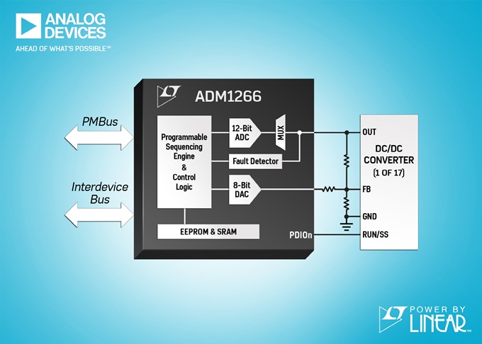 아나로그디바이스(ADI)는 최대 17개의 전원장치를 모니터링, 시퀀싱, 마지닝 하도록 프로그램이 가능한 파워바이리니어(Power by Linear) 수퍼 시퀀서(Super Sequencer) 신제품 ADM1266을 출시한다고 밝혔다.