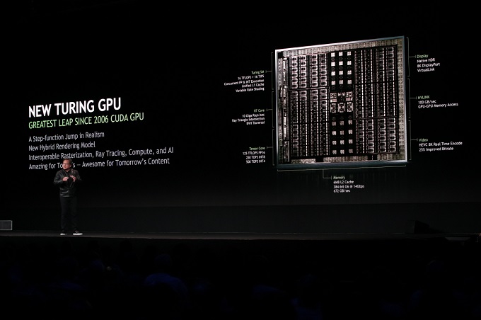 ▲튜링 아키텍처를 발표하는 젠슨 황 CEO