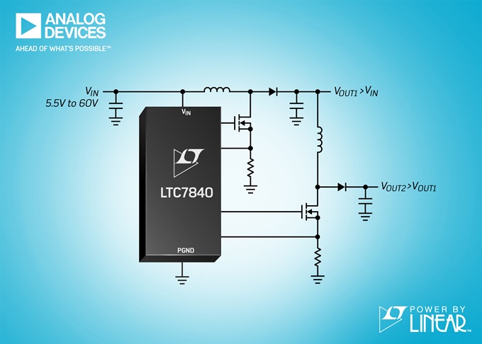 아나로그디바이스(ADI)는 2개의 외부 N-채널 파워 MOSFET을 구동할 수 있는 2-위상 비동기식 부스트 컨트롤러 신제품 파워바이리니어(Power by Linear) LTC7840을 출시한다고 밝혔다.