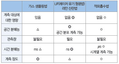 ▲ 표 1 엔진 실린더 내의 연료 농도 계측 수법