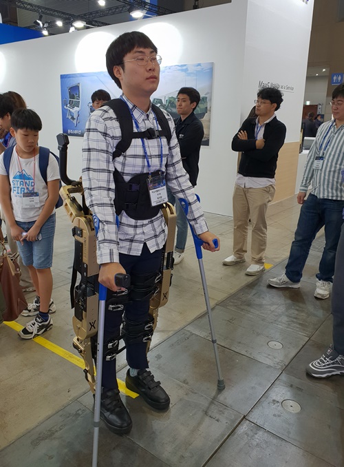 ▲웨어러블 재활 의료 장비인 ‘EAM(엑소아틀레트 메디)’