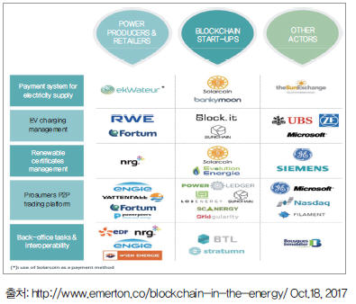 ▲ 그림1. 블록체인 기반 에너지 비즈니스모델 유형 및 기업 유형화