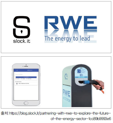 RWE는 블록체인(Blockchain)을 핵심 에너지 비즈니스에 도입할 새로운 필수적 기술로 보고, IoT 기반 거래를 최적화하여 전기차 충전을 어떻게 변환할 수 있는지 연구하기 시작했고, 첫 번째 프로젝트가 자동 충전 스테이션으로 사용자가 역을 임대하고 예금을 입금하고 자동차를 충전한 다음 보증금을 돌려받을 수 있게 하는 스마트 계약이다. 슬록잇과의 제휴를 통해 두 기업 간 역할이 분명하다. 즉, 슬록잇은 블록체인 IoT 시스템을 운영하고, RWE는 전기차 충전 네트워크를 운영한다.