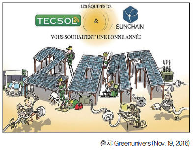 ▲ 그림 5. 프랑스 텍솔 태양광에서 분사된 벤처, 썬체인의 전기차 충전 비즈니스