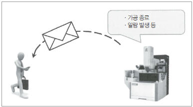 방전가공은 가공 시간이 긴 경우가 많고, 가공이 종료하기까지의 사이에 다른 작업을 하는 경우가 많다. 가공이 종료한 후나 알람 등에 의해 가공 도중에 기계가 정지했을 때, 통지를 받을 수 있으면 효율적으로 기계를 가동시킬 수 있다.