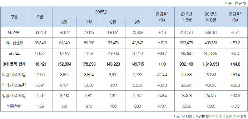 *본 리포트는 한국공작기계산업협회에서 발표한 ‘2018년 9월 공작기계 시장 동향’을 토대로 작성됐다.