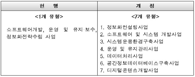 소프트웨어 중심 단일 평가 기준을 정보화컨설팅사업 등 7개 유형으로 세분