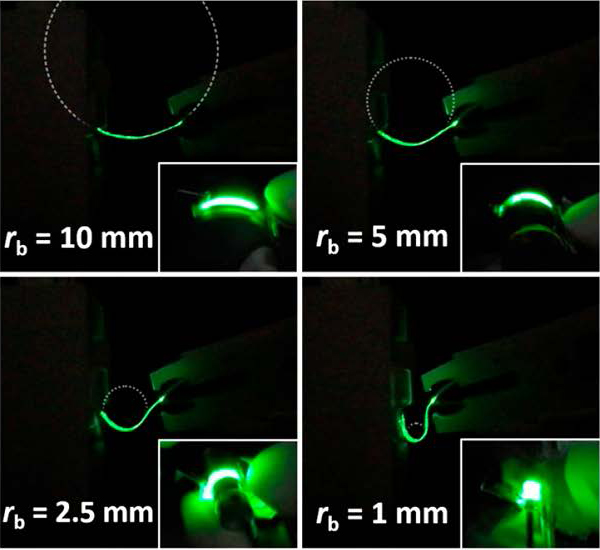 공동 제1저자인 이상윤 UNIST 신소재공학과 석‧박사통합과정 연구원은 “굽힘 곡률은 소자 성능이 유지되는 휘어짐 정도를 나타낸다”며 “숫자가 작을수록 유연하다는 뜻인데, 2.5㎜ 수준은 절반으로 접어도 성능이 유지되는 정도”라고 말했다.