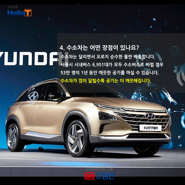 수소차가 많이 달릴수록 공기는 더 깨끗해집니다.