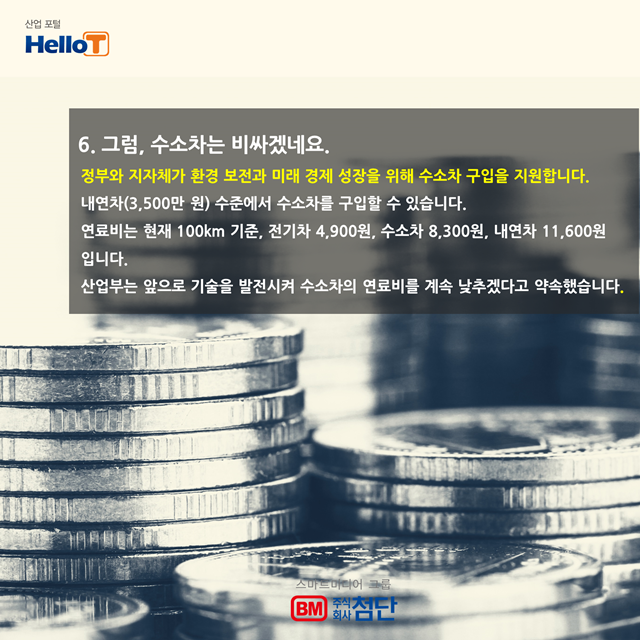 산업부는 앞으로 기술을 발전시켜 수소차의 연료비를 계속 낮추겠다고 약속했습니다.