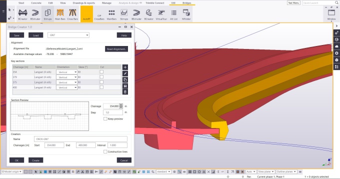 이어 그는 "도로 선형을 읽어냄으로써 다양한 폭과 깊이, 심지어 외측경사면을 가진 복잡한 상판 형상을 제작할 수 있다. 이제 이중 곡선 교량 상판을 모델링하는 작업이 어렵다는 것은 옛날 일이 됐다. 새로운 브릿지 크리에이터는 설계자를 위한 모델링을 수행한다"라고 말했다.