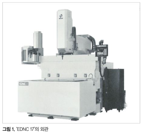 자동차의 프론트 그릴이나 도어 패널, 가전제품의 커버 등 방전가공에서는 대형 금형에 여러 개 존재하는 리브 형상을 효율적으로 가공하는 것이 요구되고 있다. 이 글에서는 리브 가공의 가공칩 배출 능력을 향상시켜, 안정된 방전가공을 실현시키는 기능으로서 개발한 ‘HS-Rib’ 및 이것을 표준 탑재한 대형 형조 방전가공기 ‘EDNC17’(그림 1)을 소개한다.