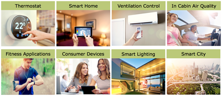모바일 및 피트니스 기기는 효과적인 공기질 감지를 사용하여 환경을 모니터링하고 공기질 상태가 나쁘면 사용자에게 이를 알려줄 수 있다. 이러한 센서는 집안의 공기를 모니터링할 뿐 아니라 출퇴근 시 자동차 실내 공기를 감지하는 데에도 사용할 수 있다. 사실상 수 많은 적용사례와 응용분야에 대한 가능성이 있을 것으로 기대된다.