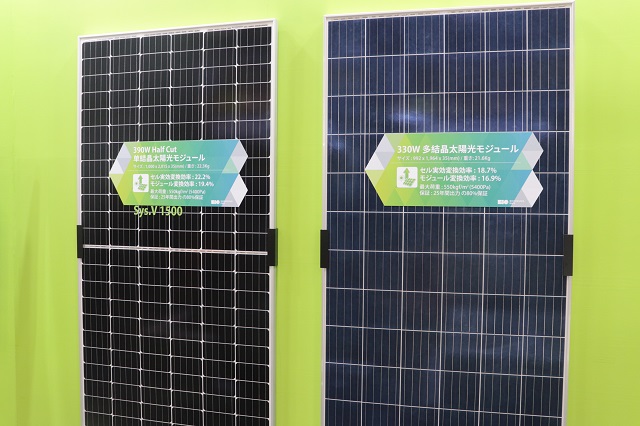 현재 일본에서는 동일한 공간에서 더 많은 전기를 생산할 수 있는 제품들을 요구하고 있다. 크지 않은 면적에서 높은 출력의 에너지를 얻어야 하고, 지붕과 옥상처럼 유휴 공간을 활용한 시장과 태양광 발전소에서 생산되는 전력을 자가소비 하는 고객들이 늘어나고 있어서다. 이에 신성이엔지는 고효율 PERC 태양전지를 활용해 제작하는 PowerXT와 유리창과 유리문을 대체 할 수 있는 BIPV 모듈 PowerVision을 전시했다.