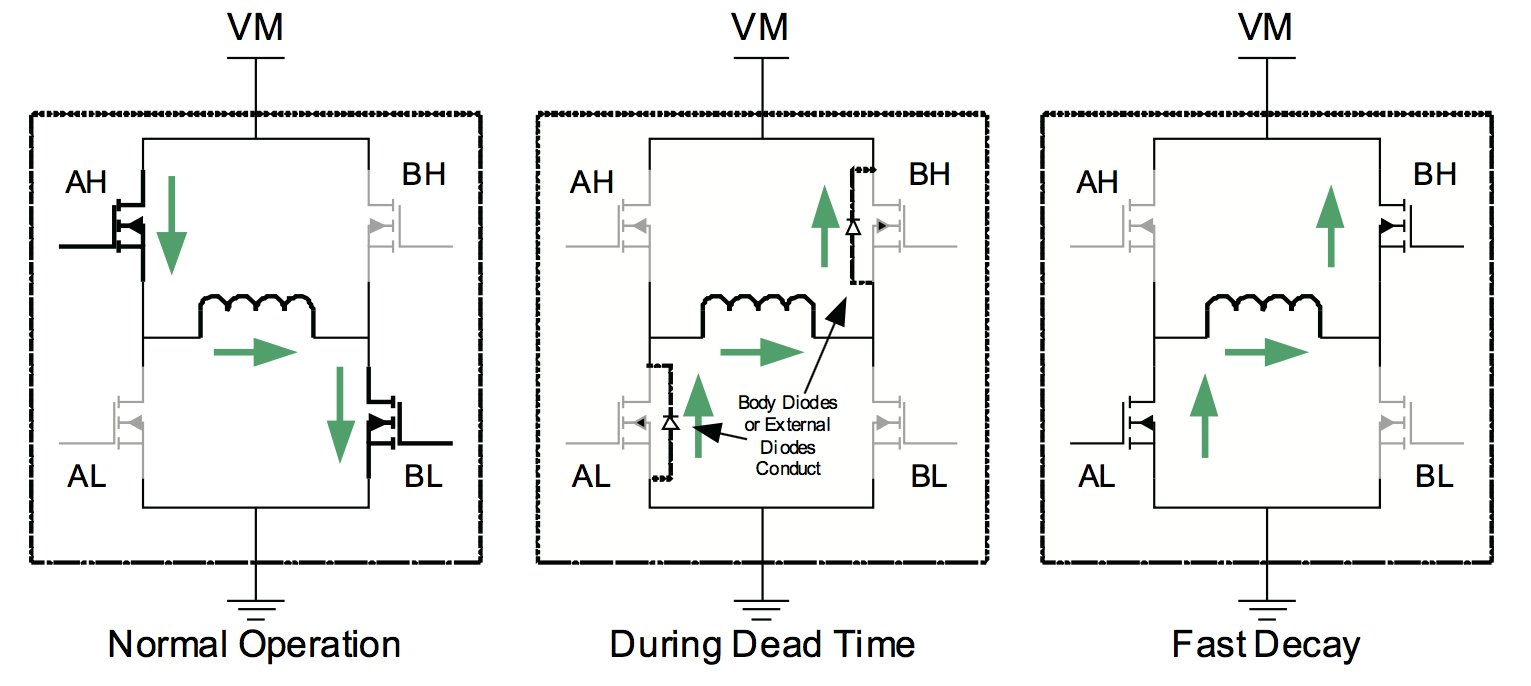 ▲ 그림 2a: 빠른 감쇠일 때 H 브리지 전류 흐름 (출처 : 텍사스 인스트루먼트(Texas Instruments))